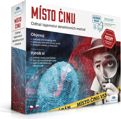 Vďaka experimentom vedeckej sady Miesto činu si deti vyskúšajú techniky detektívov – chromatografiu, snímanie odtlačkov prstov, analýzu vlákien z odevov a mnohé ďalšie. Otestujú podozrivé vzorky, naučia sa zaujímavosti o neviditeľnom atramente, ktorý je vidieť iba pod ultrafialovým svetlom, alebo napríklad zistia, ako určiť pH tekutín a rozoznať tak potenciálny „jed“ pomocou lakmusových papierikov.