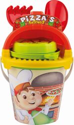• Obsahuje: Kýblik, sito v tvare pizza pece, lopatku a hrabličky, tvorítko v tvare formy na pečenie a tvorítko na pizzu a pletenec.