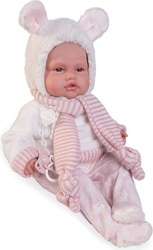 Hovoriaca, ručne vyrobená realistická španielska bábika - bábätko. Po zatlačení na bruško začne bábika vydávať zvuky podobné detskému žvatlaniu. Bábika má mäkké látkové telo, hlava a končatiny sú vyrobené z kvalitného mäkčeného vinylu.