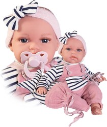 Hovoriaca, ručne vyrobená realistická španielska bábika - bábätko.Po zatlačení na bruško začne bábika vydávať zvuky podobné detskému džavotaniu. Bábika má mäkké látkové telo, hlava a končatiny sú vyrobené z kvalitného mäkčeného vinylu. Oblečenie niektorých bábik bolo vyrobené z organickej bavlny, ktorá zaručuje výrobu z ručne zbieranej, ekologicky bez chemického ošetrenia pestovanej bavlny. Firma Antonio Juan kladie veľký dôraz na ekológiu a preto ako prvá využíva v tomto odvetví spomínanú bavlnu.