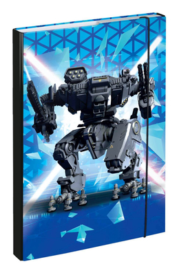 Ochranné dosky na úschovu zošitov alebo iných dokumentov, s vnútornou klopu proti vypadnutiu, zaistené gumičkou.|