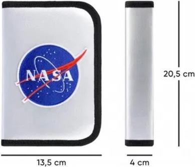 Kozmicky strieborný klasický peračník NASA s dvoma chlopňami. Jednoposchodový peračník je bez náplne. Vnútro je vybavené gumovými pútkami pre uchytenie písacích potrieb. Peračník má zatváranie na zips a je vyrobený z kvalitných materiálov.