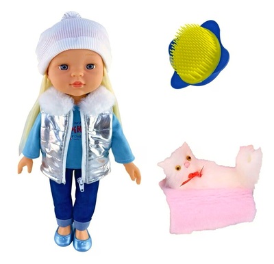 Roztomilá bábika s mačkou prinesie deťom veľa radosti! Je oblečená do zimného oblečenia s čiapkou, vďaka čomu pôsobí štýlovo a roztomilo.
