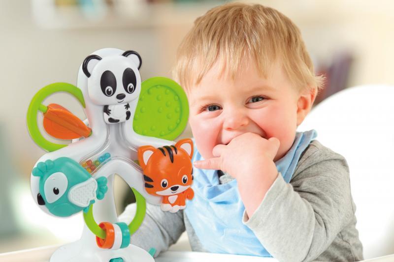 • Prísavka na základni hračky umožňuje praktické a jednoduché pripevnenie k povrchu stolčeku.