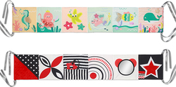 Vďaka bočným šnúrkam môžete knižku rýchlo zavesiť na postieľku. Knižka je vo forme harmonikovej knihy, môžete ju umiestniť do plochej polohy alebo vie stáť na boku.