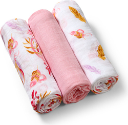 Súprava obsahuje 3 plienky: 2 z nich sú ozdobené farebnými potlačami a jedna je jednofarebná.