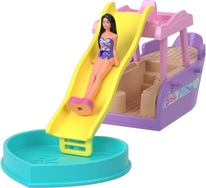 Súčasťou je aj takmer 4 cm veľká bábika Barbie® s ohybným pásom, ktorá môže sedieť a „riadiť“ čln.