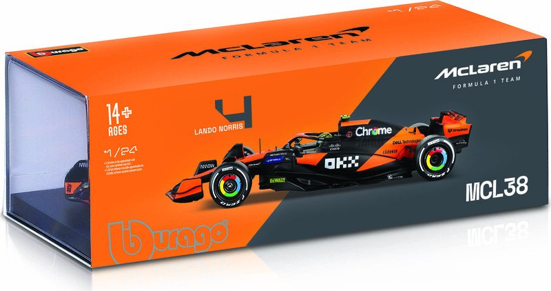 Bburago 1:24 RACE Formula F1 - McLaren F1 Team MCL38 (2024) #4 (Lando Norris) - Hard case