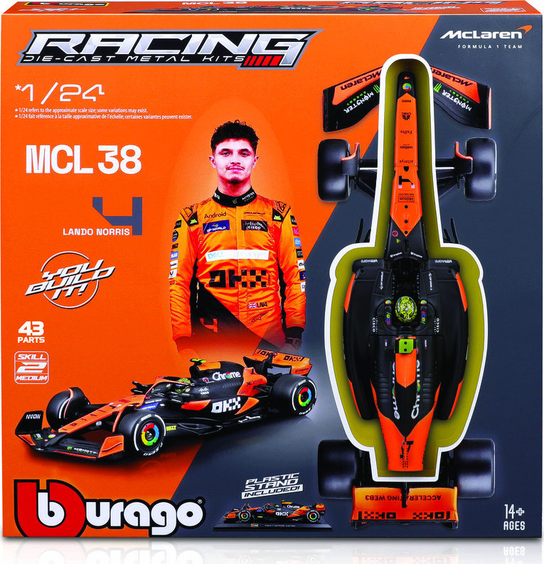 Bburago 1:24 RACE Formula F1 MODEL-KIT - McLaren F1 Team MCL38 (2024) #4 (Lando Norris)