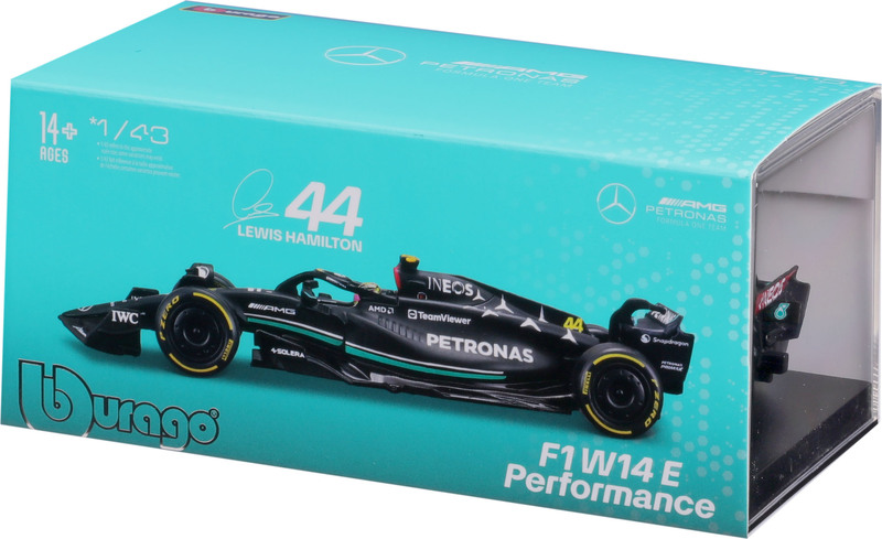 Bburago 1:43 RACE Formula F1 - Mercedes-AMG F1 W14 E Performance (2023) #44 (Lewis Hamilton) - with driver and decorative box