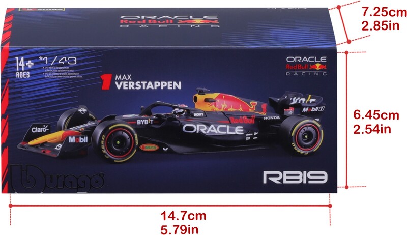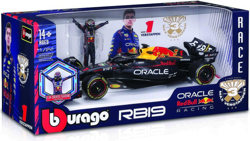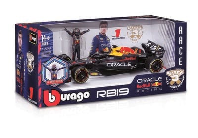 Bburago 1:43 RACE Formula F1 - Red Bull Racing RB19 (2023) #1 (Max Verstappen) - with driver and decorative box