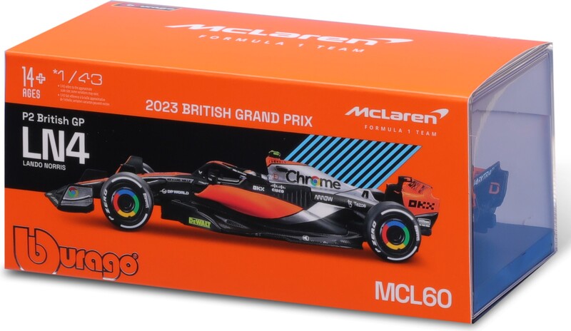 Bburago 1:43 RACE Formula F1 - McLaren F1 Team MCL60 (2023) #4 (Lando Norris) - with driver and decorative box