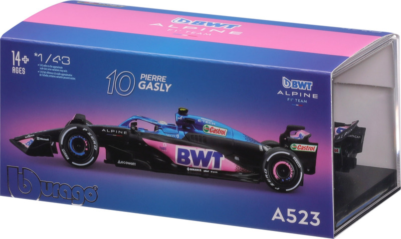 Bburago 1:43 RACE Formula F1 - BWT Alpine F1 Team A523 (2023) #10 (Pierre Gasly) - with driver and decorative box