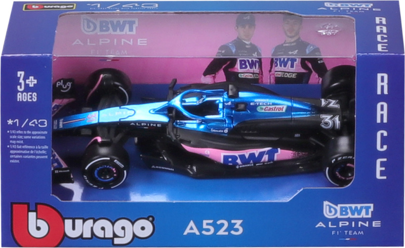 Bburago 1:43 RACE Formula F1 - BWT Alpine F1 Team A523 (2023) #31 (Esteban Ocon)