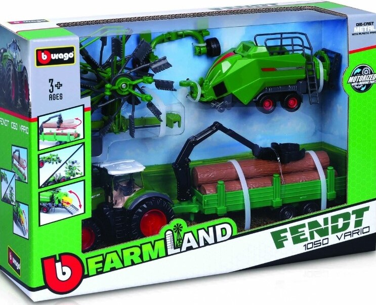 Bburago 10cm Farm tractor Gift Set - Fendt 1050 Vario with 3 trailers