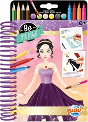 Použite samolepiace látky a oživte svoje návrhy! Nakreslite oblečenie pomocou šablón a potom ho doplňte samolepkami. Súčasťou balenia sú 4 farebné ceruzky, 4 obojstranné fixky a paleta 24 farieb.