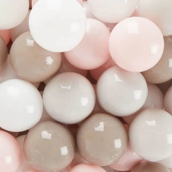 Objavte kúzlo farebných hracích loptičiek. Súprava 100 ks hracích loptičiek v tónoch ružovej, bielej a teplej šedej. Ideálna zábava na záhradu, do hracieho kútika alebo do vane či bazénu. Loptičky využijete na hranie doma aj vonku. Perfektný doplnok pre detskú radosť a rozvoj jemnej motoriky!