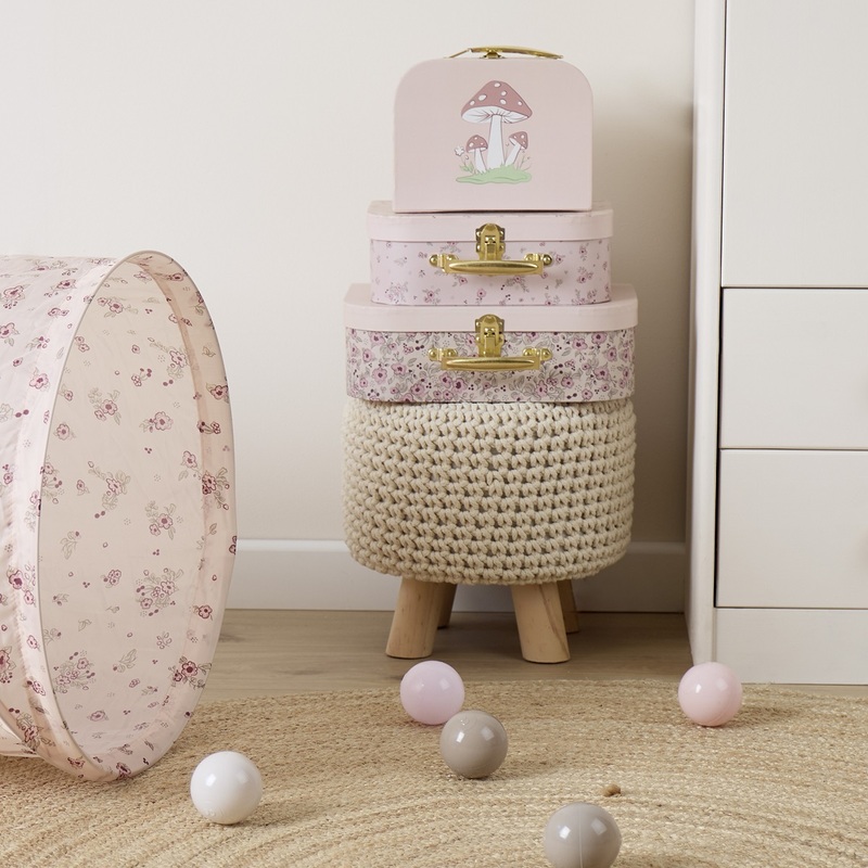 Súprava troch kartónových kufríkov je skvelým doplnkom do detskej izby aj praktickým spoločníkom na cesty. S nádhernými kvetinovými vzormi a motívom kolouška Elly očarí všetkých malých dobrodruhov. Pevné kartónové kufríky majú odolnú kovovú sponu a pohodlnú rukoväť. Sú ideálne na ukladanie detských pokladov a hračiek. Vďaka možnosti vkladať kufríky do seba sú skladné aj multifunkčné. Deti aj ich rodičia si ich zamilujú nielen pre ich krásu, ale aj užitočnosť.
