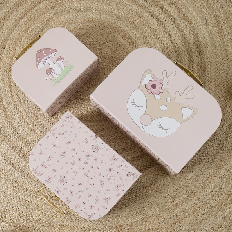 Bieco - Sada troch kartónových kufríkov - srnka Ella - dreamy flowers