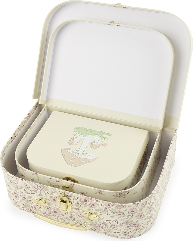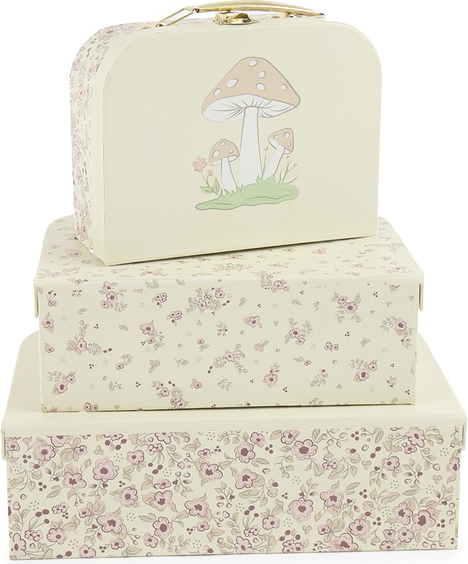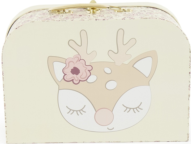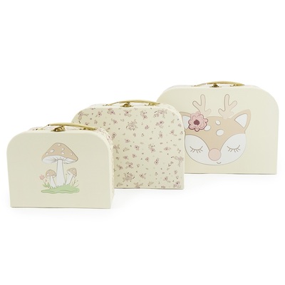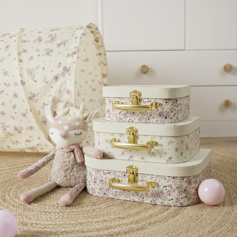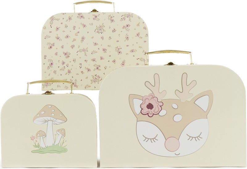 Súprava troch kartónových kufríkov je skvelým doplnkom do detskej izby aj praktickým spoločníkom na cesty. S nádhernými kvetinovými vzormi a motívom srnky Elly očarí všetkých malých dobrodruhov. Pevné kartónové kufríky majú odolnú kovovú sponu a pohodlnú rukoväť. Sú ideálne na ukladanie detských pokladov a hračiek. Vďaka možnosti vkladať kufríky do seba sú skladné aj multifunkčné. Deti aj ich rodičia si ich zamilujú nielen pre ich krásu, ale aj užitočnosť.