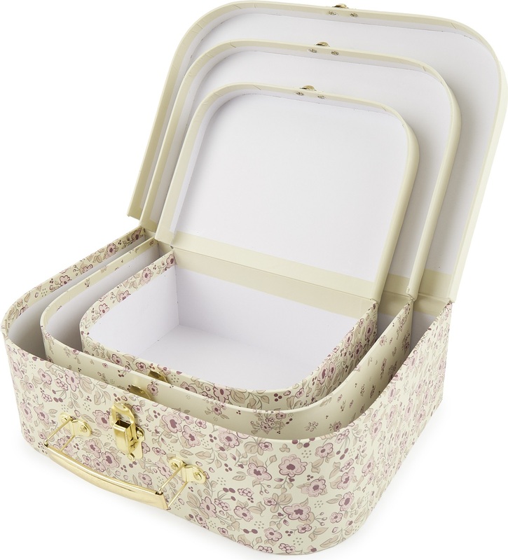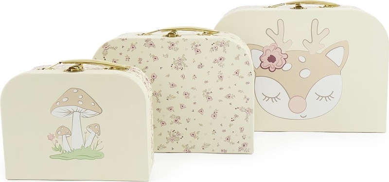 Bieco - Sada troch kartónových kufríkov - srnka Ella - vintage flowers