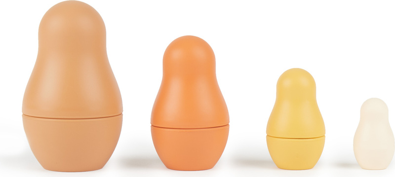 Podporte detskú fantáziu a zábavné učenie s touto skvelou silikónovou matrioškou! Deti môžu bábiky skladať do seba od najmenšej po najväčšej, triediť podľa veľkosti alebo sa s nimi nápadito hrať. Vďaka dizajnu prispôsobenému pre malé detské ručičky si deti ľahko poradia s ich manipuláciou.