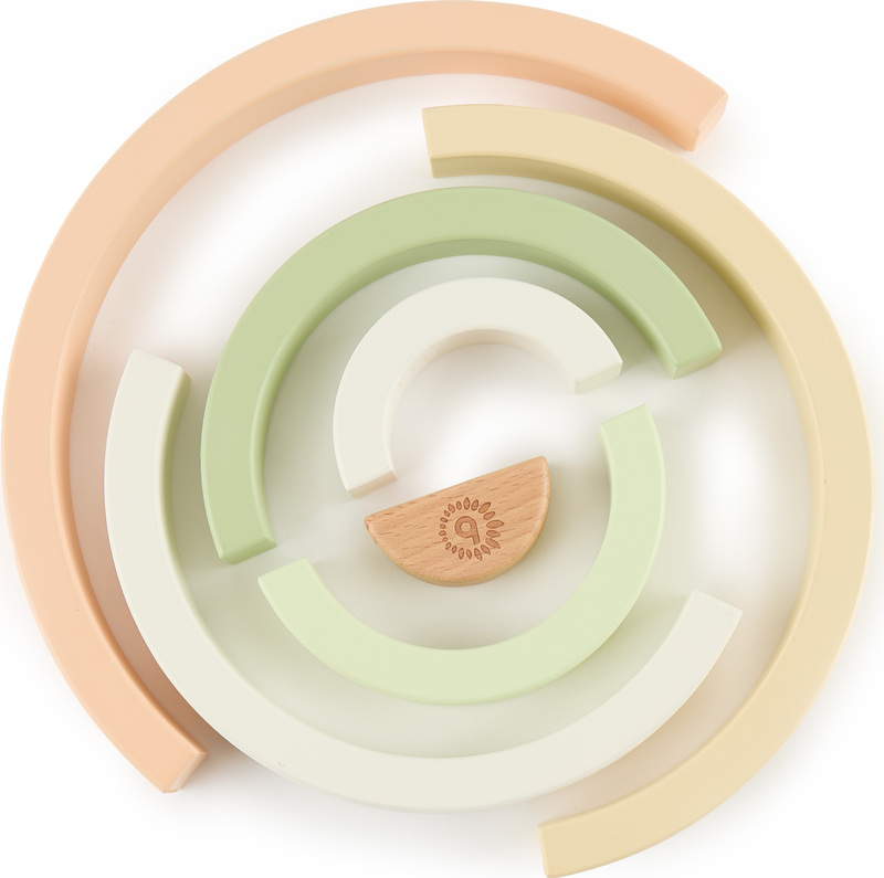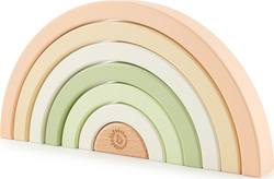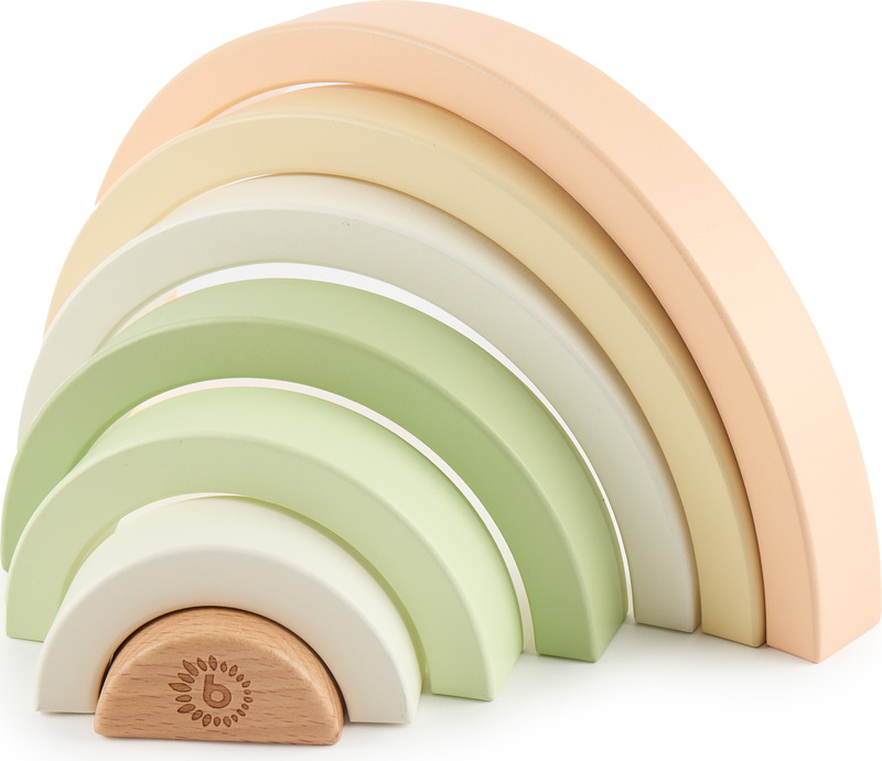 Perfektná hračka pre tréning jemnej motoriky, koordinácia rúk a očí aj rozpoznávanie farieb. Dieliky sú prispôsobené pre malé detské ručičky, vďaka tomu si deti ľahko poradia s ich manipuláciou. 7 ľahko uchopiteľných drevených oblúkov môže vaše dieťa skladať, triediť alebo sa s nimi samostatne hrať. Jednoduché tvary nabádajú deti k nápaditej hre, ktorá podporuje detskú fantáziu a kreativitu. Ako deti rastú, používajú dúhu ako kolísku pre bábiky, ako plot pre zvieratká, ako tunel alebo most pre vozidlá, ako domček pre plyšové hračky a bábiky. Tieto dieliky farebné dúhy môžu deti vždy integrovať do hry s množstvom fantázie.
