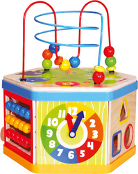 Multifunkčná motorická kocka je kvalitnou drevenou hračkou pre malé šikulky.