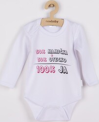 Originálne bavlnené dojčenské body s dlhým rukávom New Baby, s vtipným nápisom 50% MAMIČKA + 50% OTECKO - 100% JA.