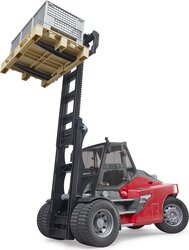Súčasťou modelu je paleta a trojica boxov, je tak ihneď pripravený na fantastické hry. Do precízne spracovanej kabíny s výhľadom do všetkých strán je možné vstupovať otvárateľnými dvierkami. Priestor kabíny je samozrejme kompatibilný s figúrkami Bruder BWORLD.