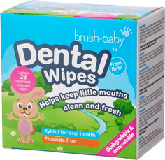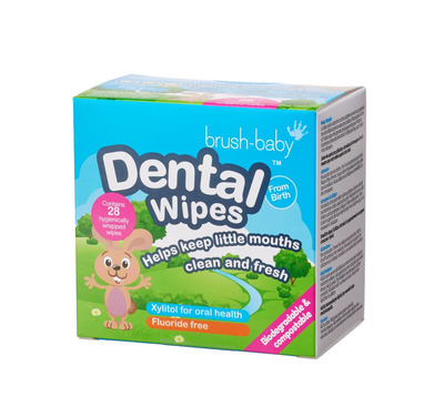Biologicky odbúrateľné a kompostovateľné čistiace obrúsky Brush-baby Dental Wipes sú šetrné k životnému prostrediu a vhodné pre bábätká už od narodenia. Používajte ako súčasť každodennej starostlivosti o ústnu dutinu vášho dieťaťa a tiež po hlavných jedlách či desiatach. Včasným zavedením starostlivosti o ústnu dutinu minimalizujete bolesti pri prerezávaní zúbkov, v neskoršom veku problémy s čistením zubov a zlým dychom, pretože vaše bábätko bude na čistenie zvyknuté. Praktické balenie obsahuje 28 jednotlivo balených obrúskov. Ideálne na cesty a výlety.