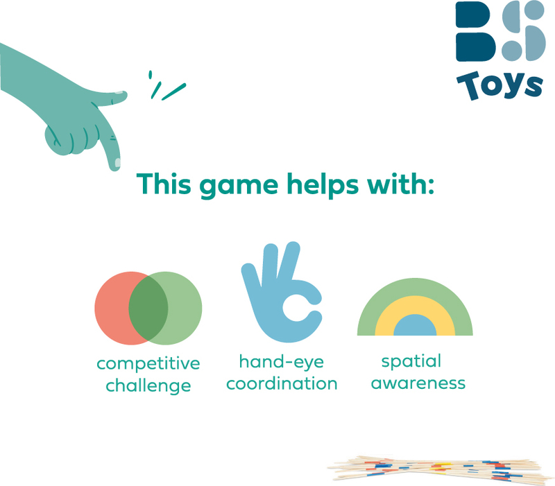 Hra Mikádo pre 2-6 hráčov od 8 rokov je vyrobená z dlhých bambusových tyčí. Súprava obsahuje 31 bambusových tyčiek, ktorých prirodzene nepravidelný tvar pridáva na výzve. Hráči striedavo vyťahujú jednotlivé tyčky, pritom sa snažia nepohnúť s ostatnými – ideálne na rozvoj jemnej motoriky i trpezlivosti.