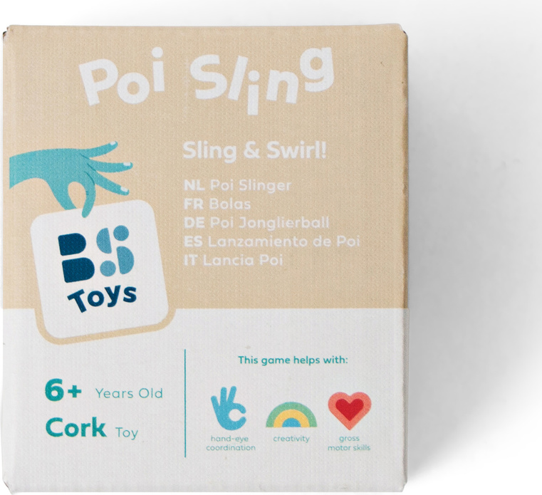 Poi sling je hračka, ktorá slúži na rozvoj koordinácie oko-ruka a kreativity u detí. Hračka vhodná pre deti od 4 rokov kombinuje jednoduché točenie s hravými farebnými stuhami. Vďaka korkovému závažiu a dlhým stužkám sa ľahko ovláda a je ideálny pre začiatočníkov.