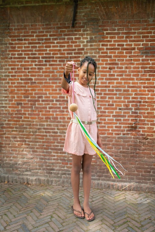 - 8 látkových stuh 140 cm, rukoväť 21,5 cm, lano 41 cm, korková guľa priemer 6 cm.