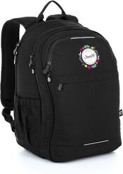 Dvojkomorový batoh v temne čiernej farbe oživený vyšívanými kvetmi a štýlovou nášivkou. Chrbát batohu je polstrovaný a anatomicky tvarovaný z mäkkej peny. Vnútri zadnej komory je umiestnené polstrované vrecko na notebook aj tablet.