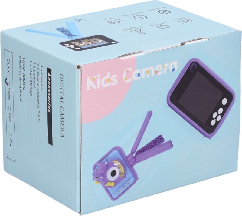 • Detský digitálny fotoaparát silikónové púzdro dino statív - foto 48Mpx