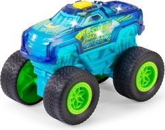 Veľká šou monster truckov - Stlačením tlačidla sa 17 cm vysoké autíčko "Sonic Smasher" premení na pohyblivé pódium a predvedie akčnú svetelnú a zvukovú šou.