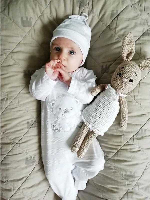 - Obsahuje celorozopínacie body s dlhým rukávom, dupačky, kabátik a čiapočku.