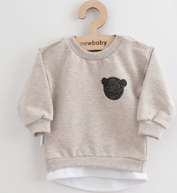 Tričko s dlhým rukávom so zapínaním na cvočky na ramienku, je vyrobené s príjemnej teplákoviny. Je zdobené zaujímavým 3D obrázkom medvedíka. Tričko má v spodnej časti bavlnenú vsadku, ktorá dodáva šmrncovný vzhľad.