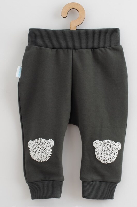 Tepláčky s pružným lemom v páse a na nohavičkách sú vyrobené s pohodlnej teplákoviny. Na kolienkach je ABS potlač v tvare medvedíka. Ochráni tak kolienka dieťaťa pri lezení.