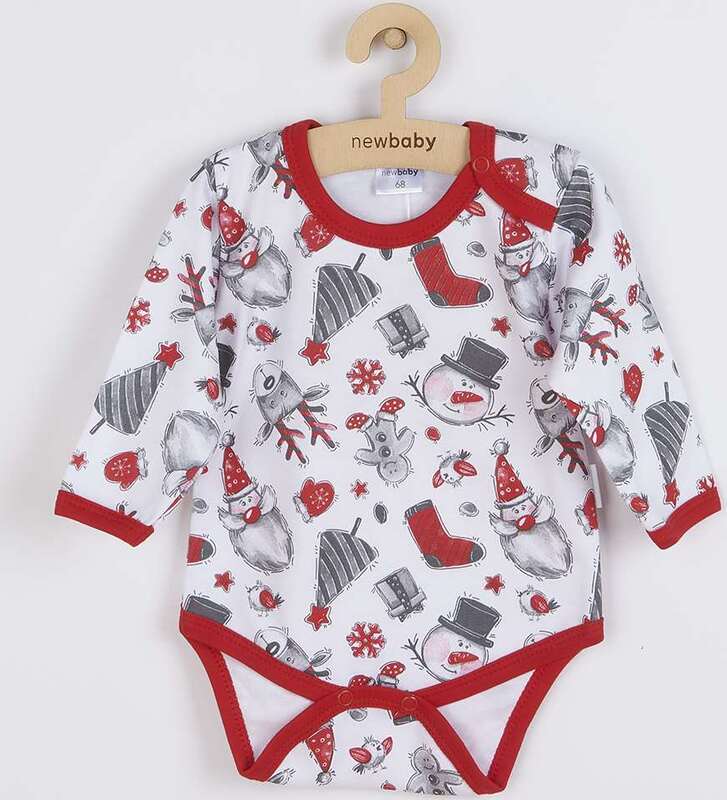 Body je zdobené roztomilým vianočným motívom. Zapínanie na cvočky na ramienku a medzi nožičkami uľahčuje obliekanie a prebaľovanie bábätka.