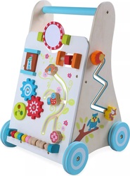 Drevené chodítko Activity nielenže podporuje nácvik chôdze, ale je vybavené aj mnohými prvkami, ktoré rozvíjajú koordináciu oko-ruka - vaše dieťatko si s chodítkom užije veľa zábavy, ale zároveň podporí svoj psychomotorický vývoj radostnou a pútavou hrou. Interaktívny panel obsahuje posuvný labyrint a skladačku, ktoré pomáhajú deťom rozpoznávať farby, tvary a zvieratá a zároveň podporujú ich kreativitu.