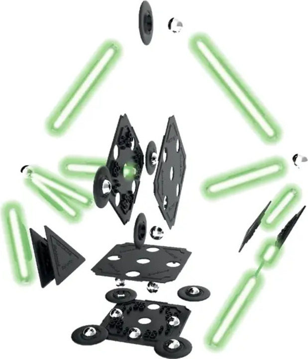 Obsahuje magnetické tyčinky, oceľové guličky a plastové komponenty, z ktorých sa dajú vytvárať nekonečné konštrukcie – jediným limitom je fantázia.