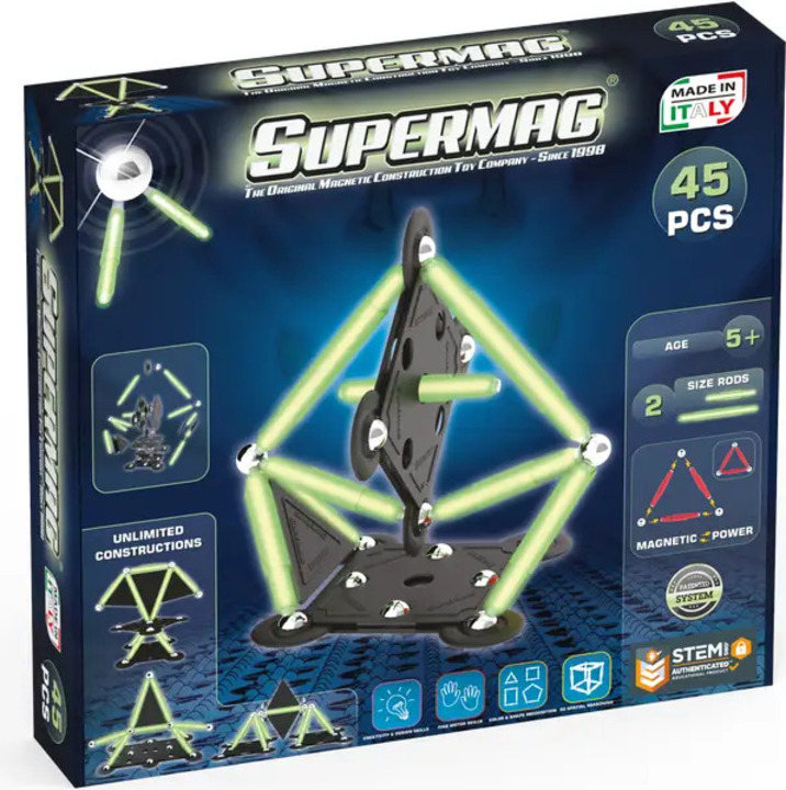 Supermag Glow je magnetická stavebnica, ktorá poteší všetky zvedavé deti od 5 rokov.