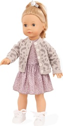 Očarujúca hravá bábika Jessica Grey Cat ohromuje svojimi ľahkými šatami v sivo-fialovom leopardom vzore, s hravými trúbkovými rukávmi a volánovou sukňou. Jej vzhľad dopĺňa trendy pletený kardigán v ladiacom leopardom dizajne a štýlové biele tenisky. So svojimi blond vlasmi a jasnými modrými zatváracími očami pozýva deti do sveta nápaditého rozprávania príbehov. Hranie rolí a zábava pre malých rodičov bábik Jessicino mäkké telo a jemné zatváracie oči inšpirujú deti ku kreatívnemu hraniu rolí.