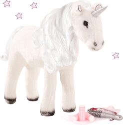 S týmto jednorožcom zažijete magické chvíle. Stačí ho len česať a upravovať – kefa a natáčky sú súčasťou súpravy. Bábika, sedlo a uzda nie sú súčasťou tejto súpravy!