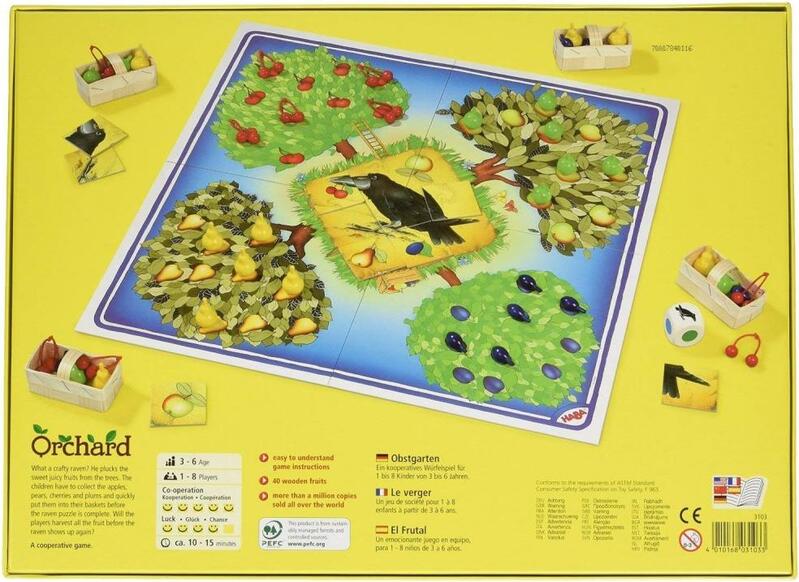 Ľahko pochopiteľná kooperatívna dosková hra pre deti od 3 do 6 rokov. Stromy v sade sú plné ovocia, úlohou hráčov je ich ochrániť pred drzým havranom.