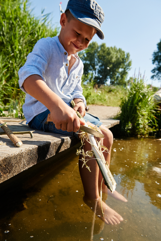 Praktický detský vreckový nôž z dreva a nehrdzavejúcej ocele je pevný a deťom sa ľahko a bezpečne drží v ruke. Má zaoblenú špičku a dvojitý bezpečnostný krúžok, ktorý zabraňuje nechcenému zaklapnutiu alebo otvoreniu noža. Či už pri vyrezávaní, tvorení z prírodných materiálov alebo pri pikniku – tento vreckový nôž má mnohostranné využitie. Po použití sa dá bezpečne uložiť do priloženého filcového puzdra a vďaka hliníkovej karabínke jednoducho pripevniť na batoh alebo opasok.