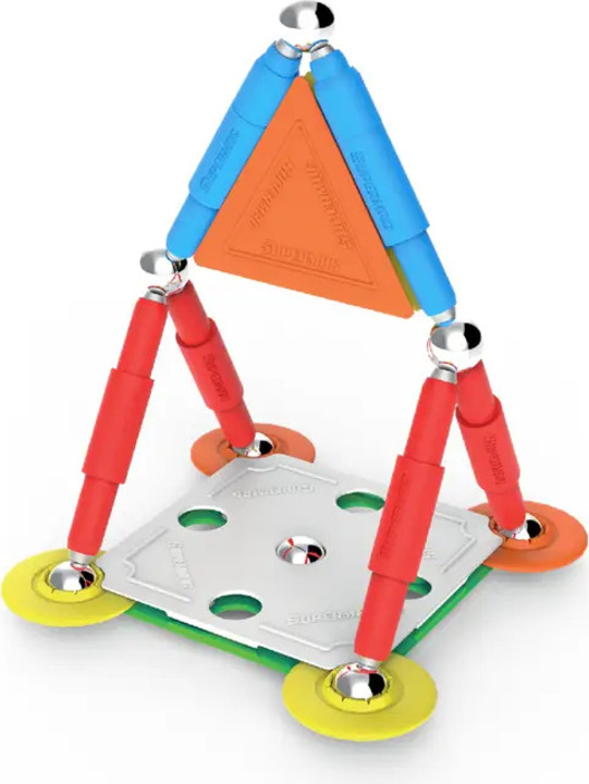 Táto sada sa vyznačuje patentovaným a 100 % bezpečným magnetickým systémom, ktorý umožňuje stavať jednoduché aj zložitejšie modely v 2D aj 3D, vrátane dynamických a pohyblivých projektov.