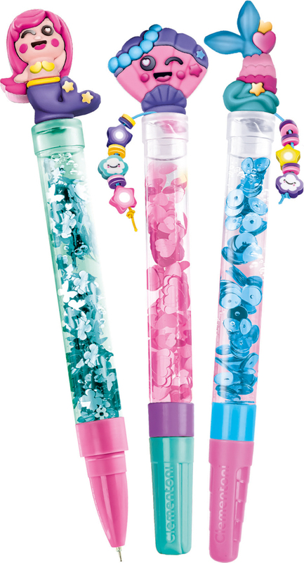 Kreatívna sada IDEA Magical Mermaids vám umožní zostaviť si vlastné perá a ozdobiť ich trblietavými doplnkami s motívom morskej panny – ideálne na prinesenie kúzla podmorského sveta do vašich písacích potrieb.